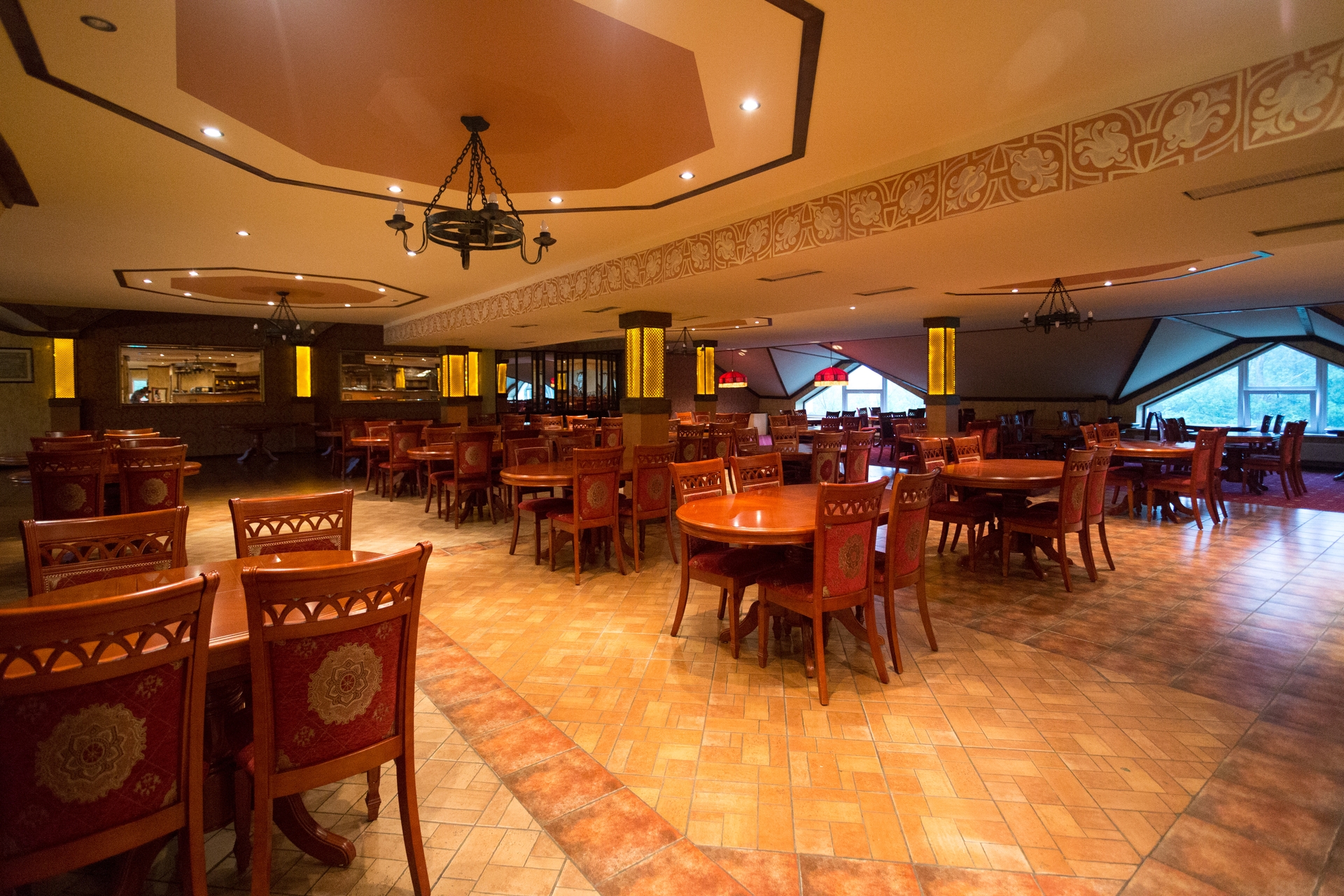 Ресторан Forest предлагает питание по системе «шведский стол» с трёхразовым циклом: завтрак (08:30–11:00), обед (13:00–15:00) и ужин (18:00–20:30). Меню включает широкий выбор горячих и холодных блюд, закусок, десертов и напитков, в том числе специализированный детский стол. Ресторан «Марко Поло», в свою очередь, работает по принципу à la carte и известен как место проведения вечерних шоу-программ, мини-диско и тематических дискотек, что делает его популярным не только для трапезы, но и для развлекательного досуга.