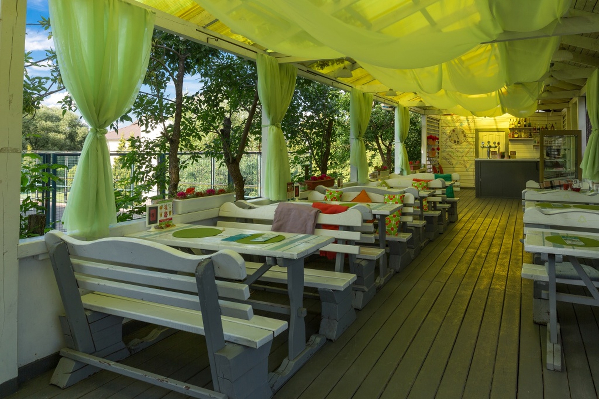 Летнее кафе «Веранда» в отеле «Фореста Фестиваль Парк» расположено на деревянной террасе светлых тонов в тени деревьев и работает в тёплый сезон — с мая по октябрь. Вместимость площадки позволяет организовать банкет до 30 человек. В меню представлены блюда европейской кухни, гриль-меню, шашлыки, десерты, мороженое, а также лёгкие прохладительные напитки, что делает кафе удобным местом для неформального общения и отдыха на свежем воздухе.