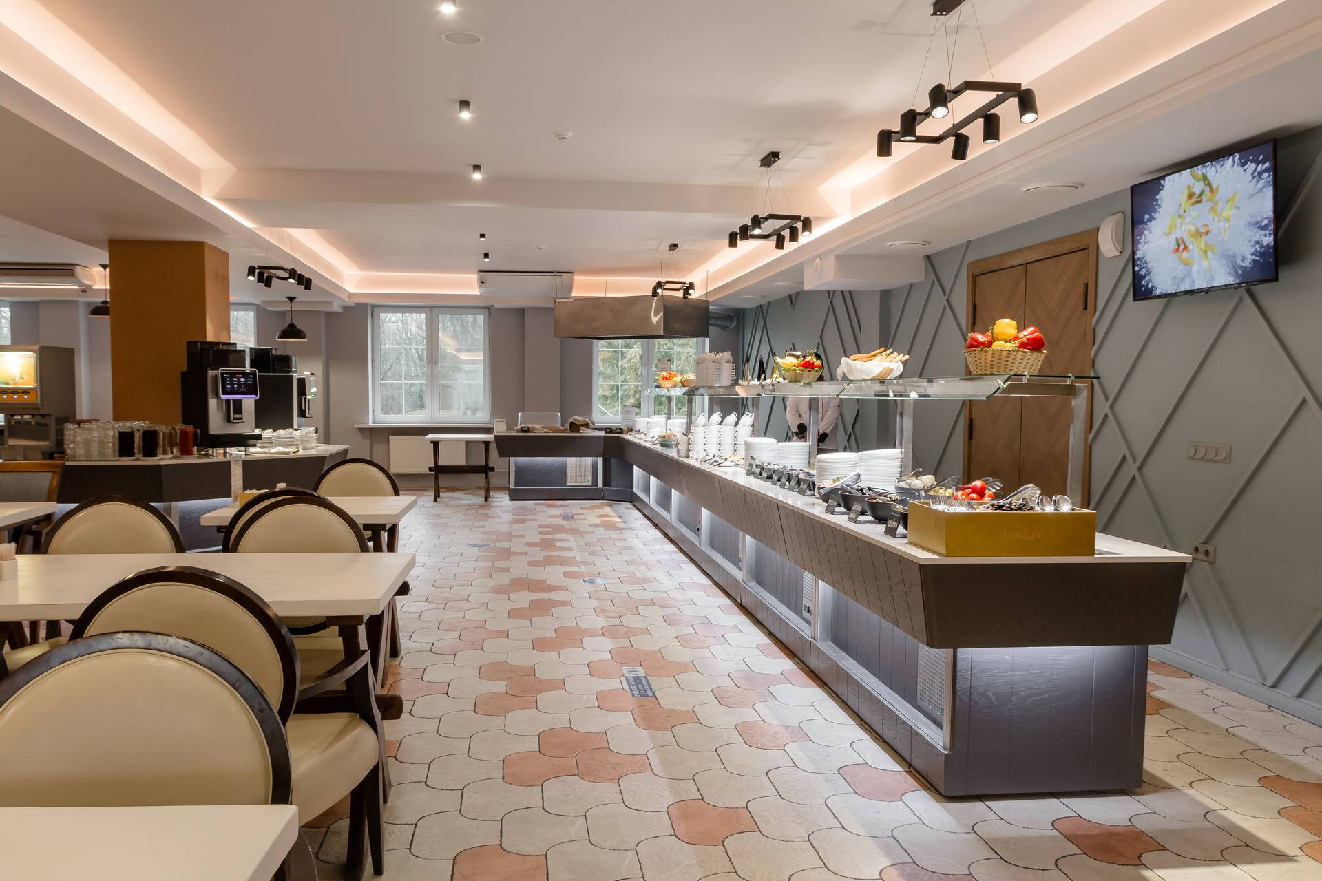 Ресторан Forest, расположенный на втором этаже ресторанного комплекса отеля «Фореста Фестиваль Парк», работает по системе «шведский стол»: завтрак — с 08:30 до 11:00, обед — с 13:00 до 15:00, ужин — с 18:00 до 20:30. В течение дня, с 08:30 до 21:30 (в выходные — до 01:00), гостям также доступен заказ блюд à la carte.