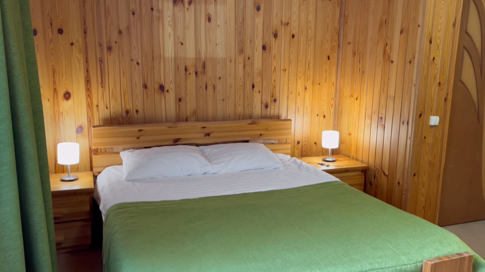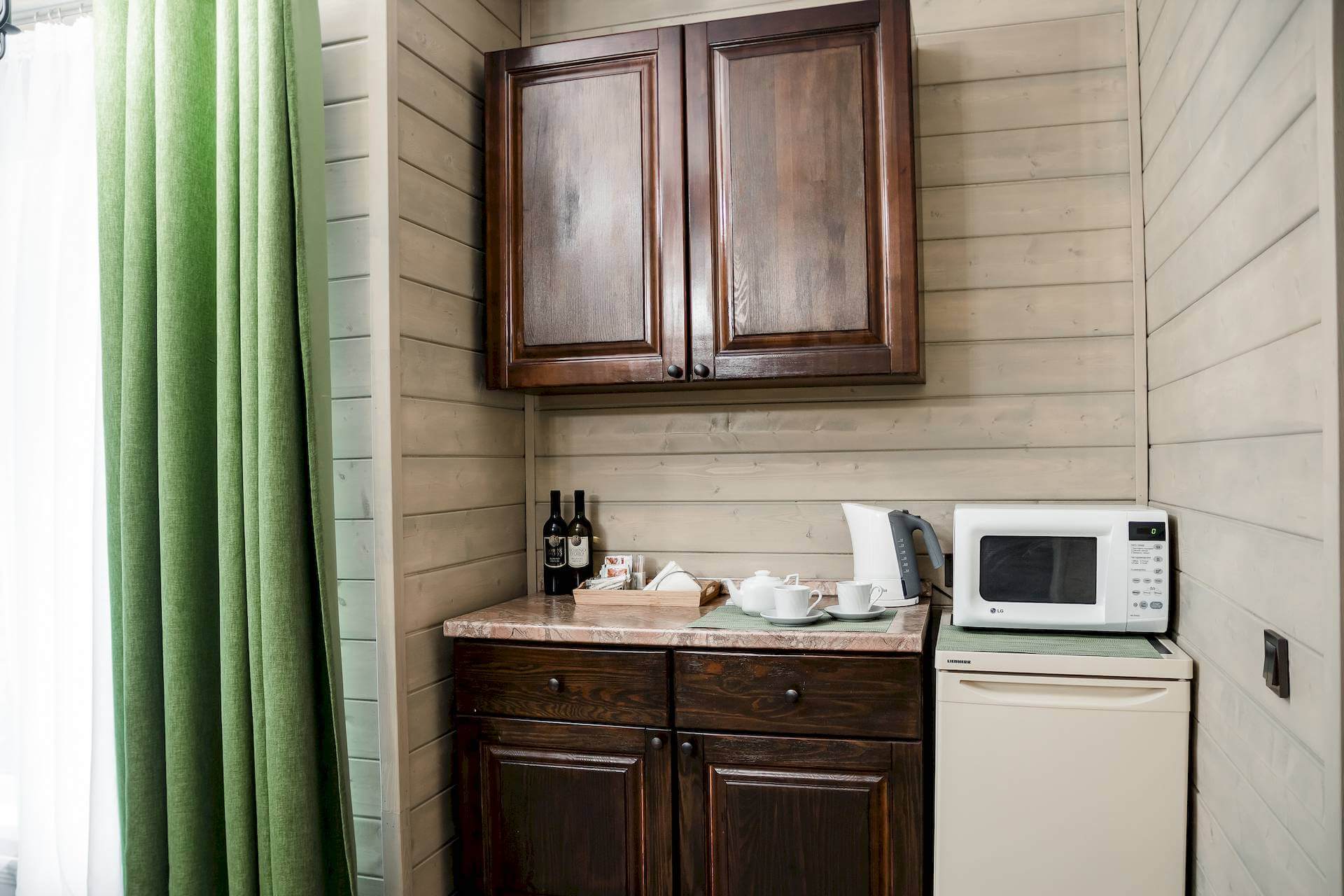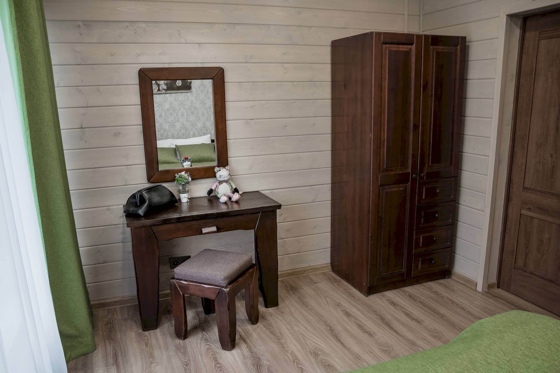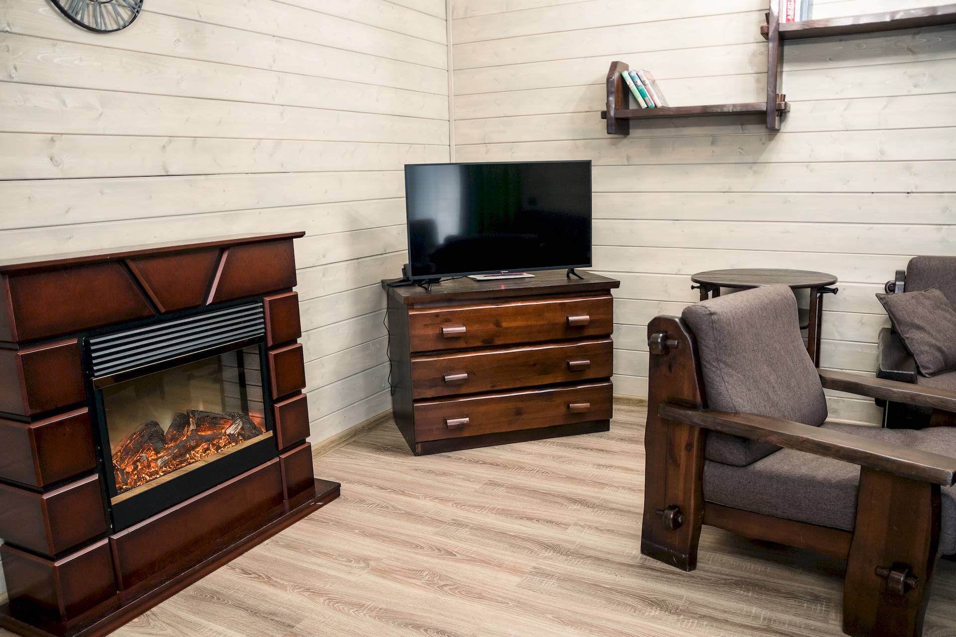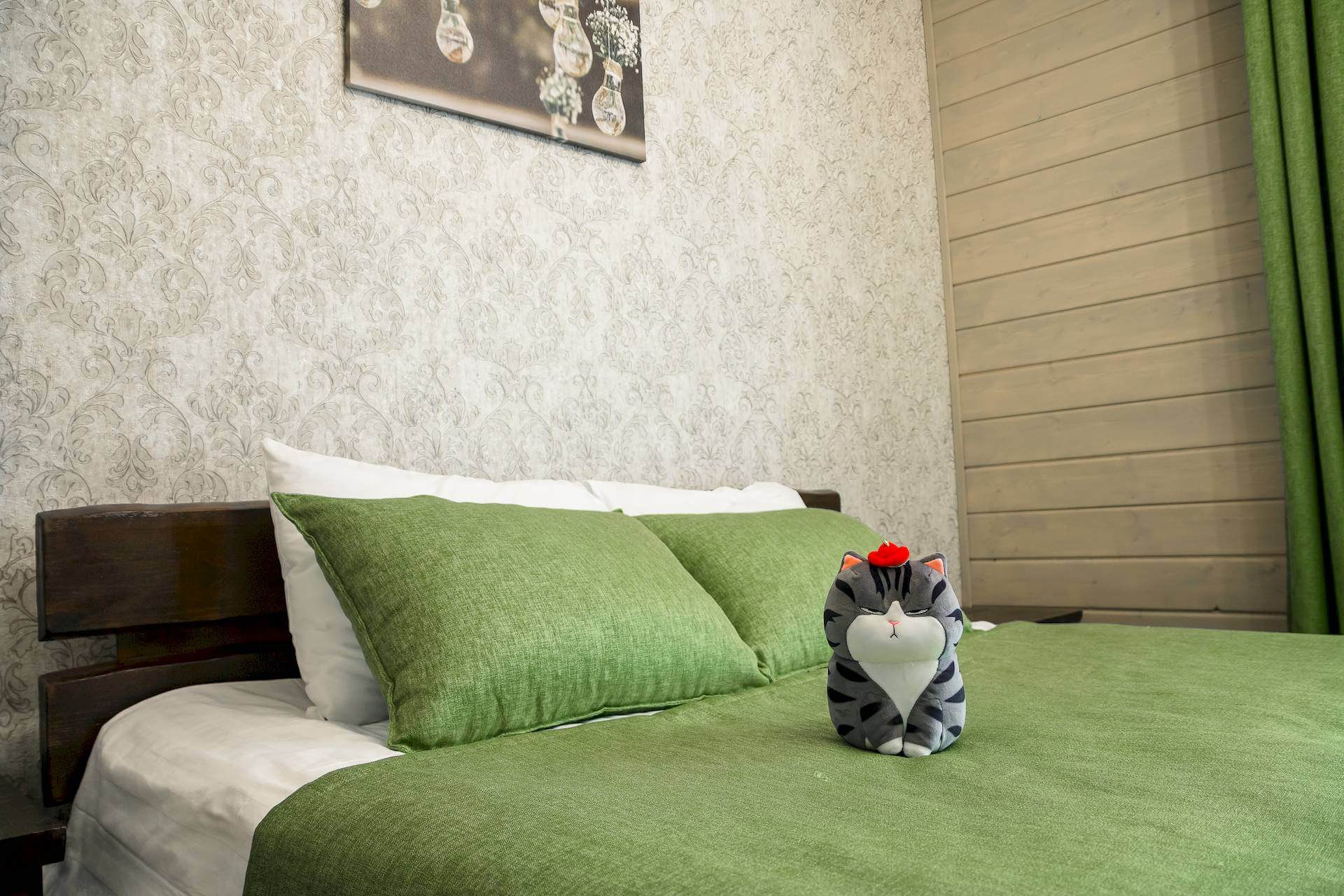 Одноэтажный двухкомнатный коттедж площадью 48 квадратных метров предлагает гостям автономное и уютное размещение в формате загородного домика. Спальная комната оборудована двуспальной кроватью, а гостиная зона — вместительным раскладным диваном, что позволяет комфортно разместить от двух до четырёх человек. Внутреннее пространство дополняют бытовые удобства: микроволновая печь, холодильник, электрический чайник и декоративный электрокамин, создающий атмосферу тепла и уединения. Такой формат проживания особенно востребован семьями и гостями, ценящими независимость, домашний уют и близость к природе при сохранении всех преимуществ инфраструктуры отельного комплекса.