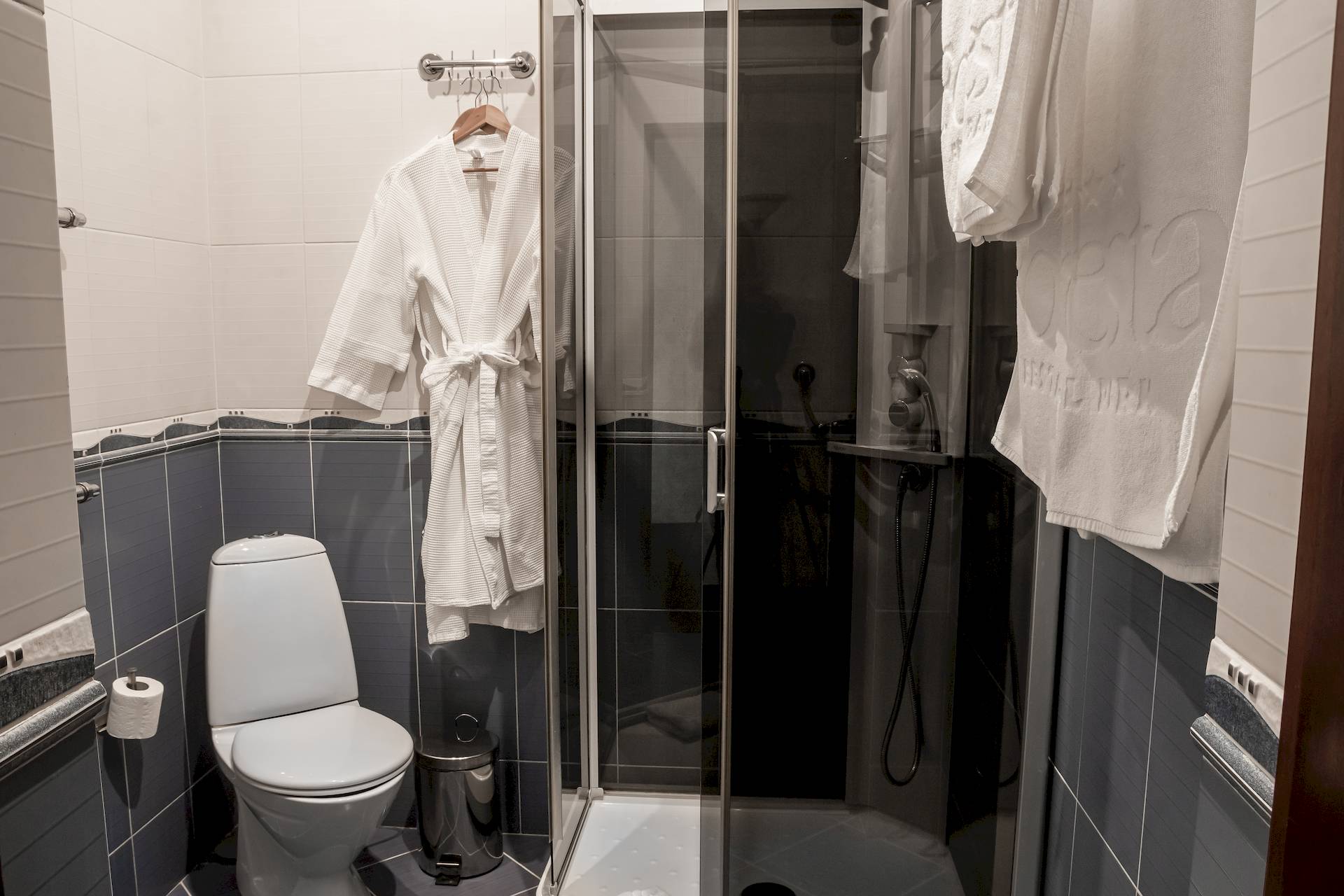 Гостевой дом «Скобеево» представляет собой одноэтажный трёхкомнатный коттедж площадью 140 м², рассчитанный на размещение от двух до шести человек. В его составе — две спальные комнаты с двуспальными кроватями, просторная гостиная с мягкой мебелью, барной стойкой и электрокамином, а также собственная сауна. В прихожей предусмотрены шкаф, зеркало и вешалка; в доме расположены две ванные комнаты с душевыми кабинами, фенами и комплектами полотенец. Каждое помещение оснащено телевизором и телефоном, а спальни дополнены прикроватными тумбочками. Все удобства расположены на одном этаже, что обеспечивает максимальный комфорт и доступность для гостей.
