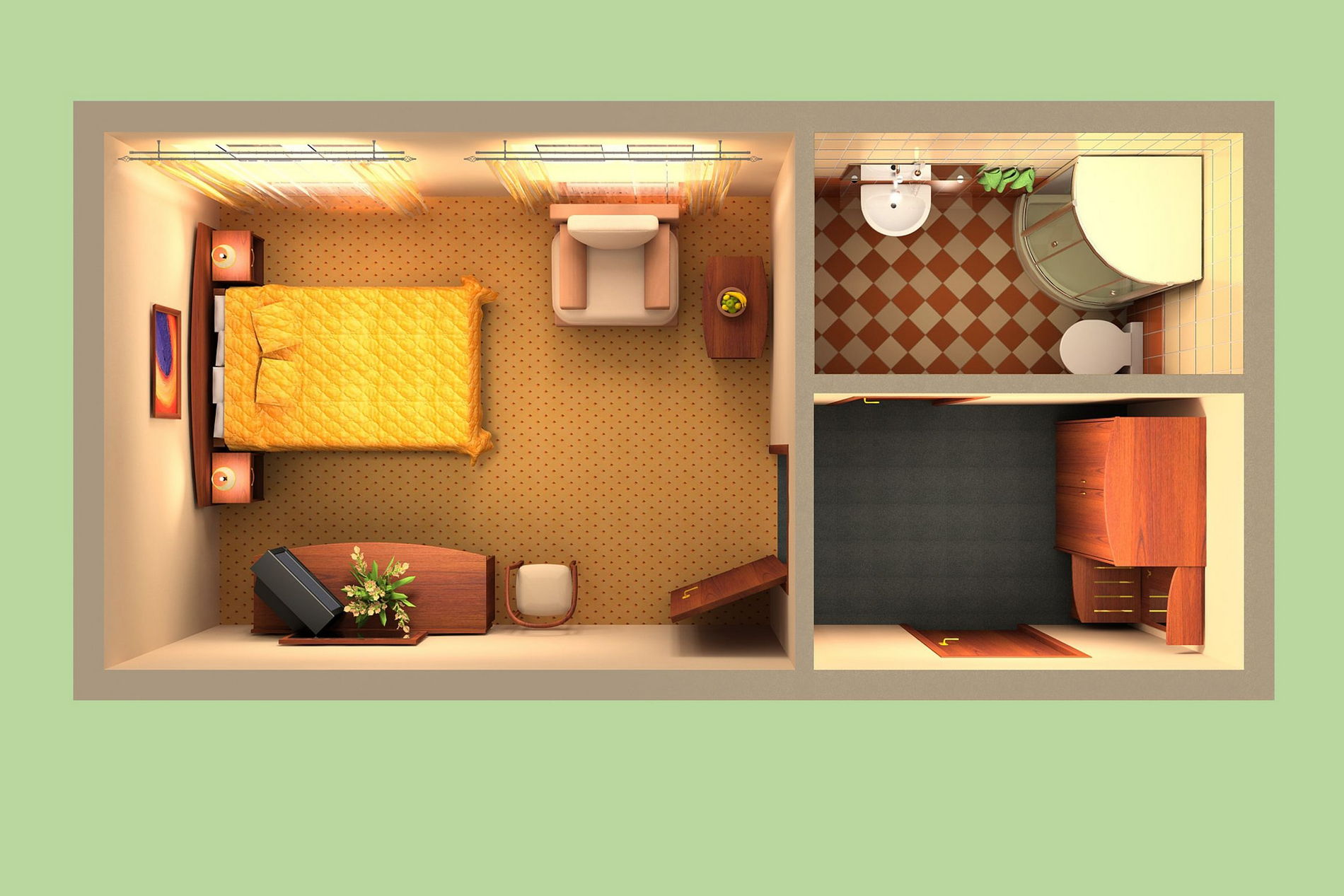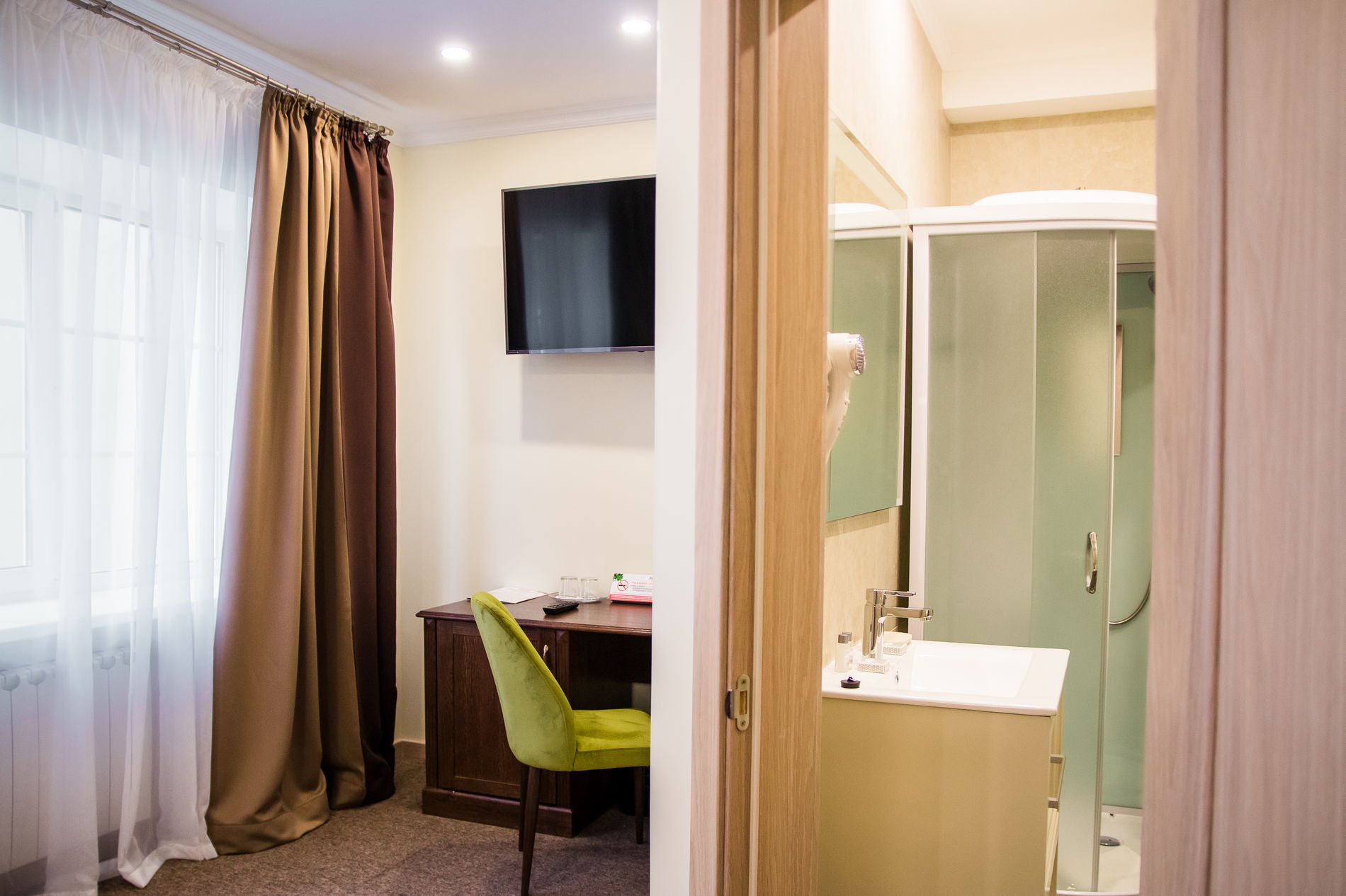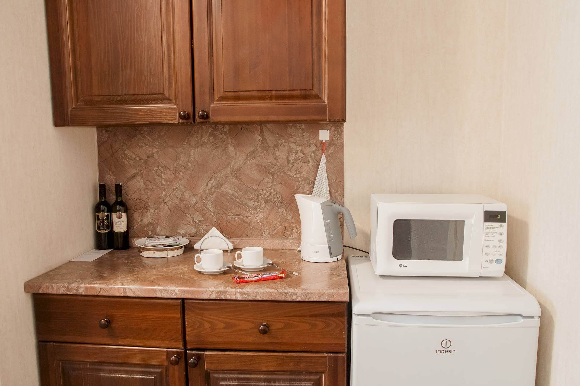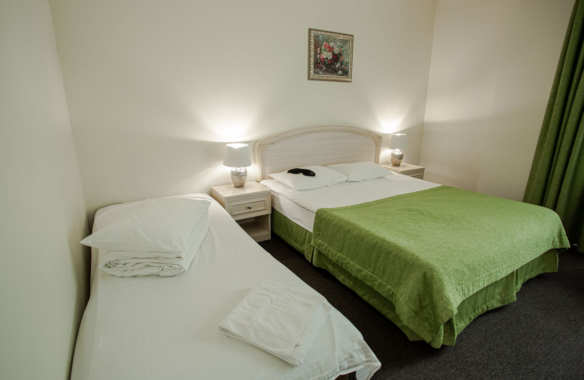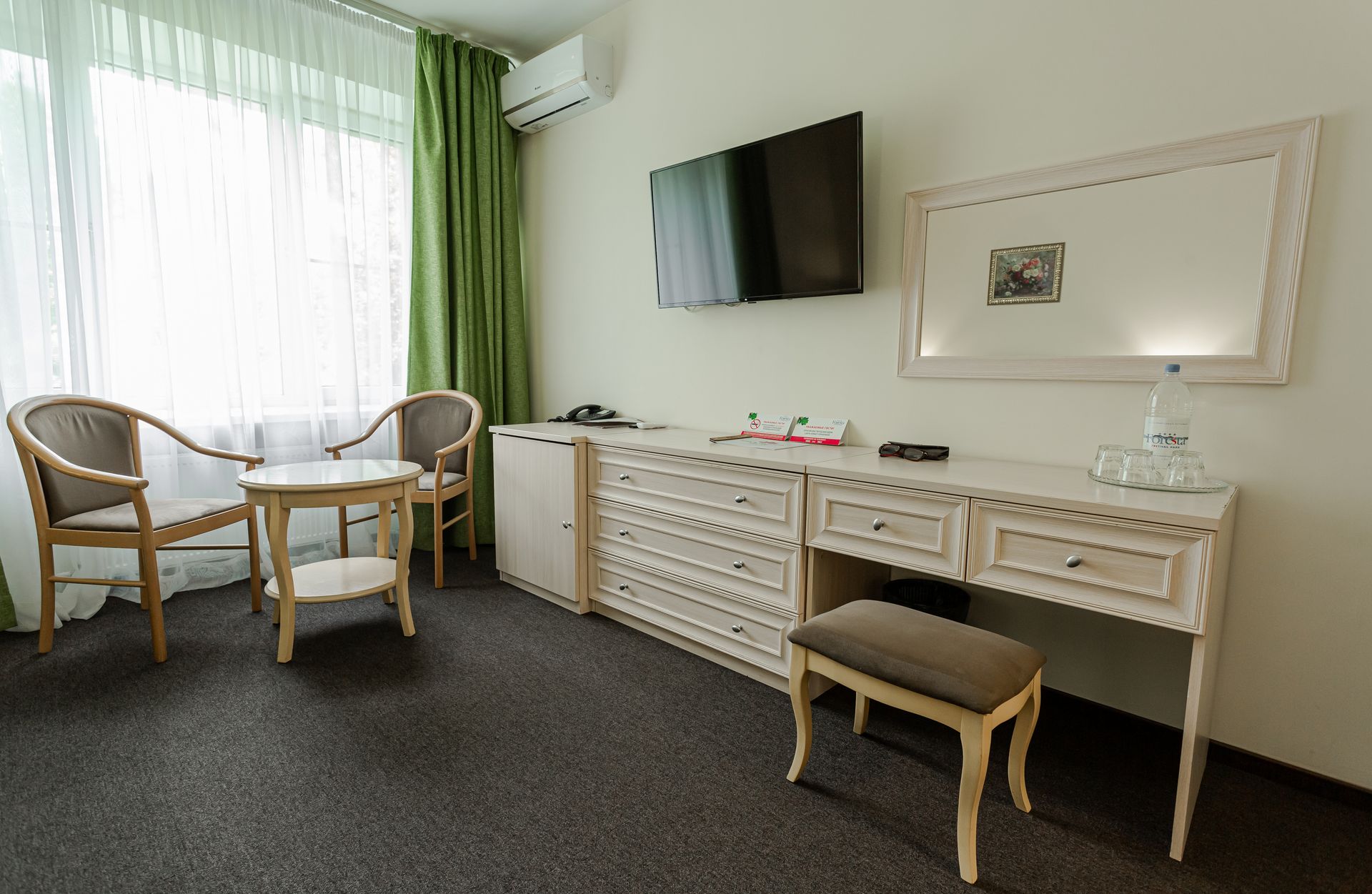 Просторные однокомнатные номера категории «Улучшенный» предлагают площадь от 32 до 43 м² и рассчитаны на размещение до четырёх человек. Основное спальное место организовано с помощью двуспальной или двух односпальных кроватей, а дополнительные гости могут воспользоваться раскладным диваном; в отдельных номерах также предусмотрено кресло-кровать. Такая компоновка особенно подходит для семейного отдыха, обеспечивая одновременно комфорт, функциональность и личное пространство для каждого члена семьи. Интерьер выполнен в современном ключе с акцентом на практичность и эстетику, создавая благоприятную атмосферу для полноценного восстановления сил в течение всего периода проживания.