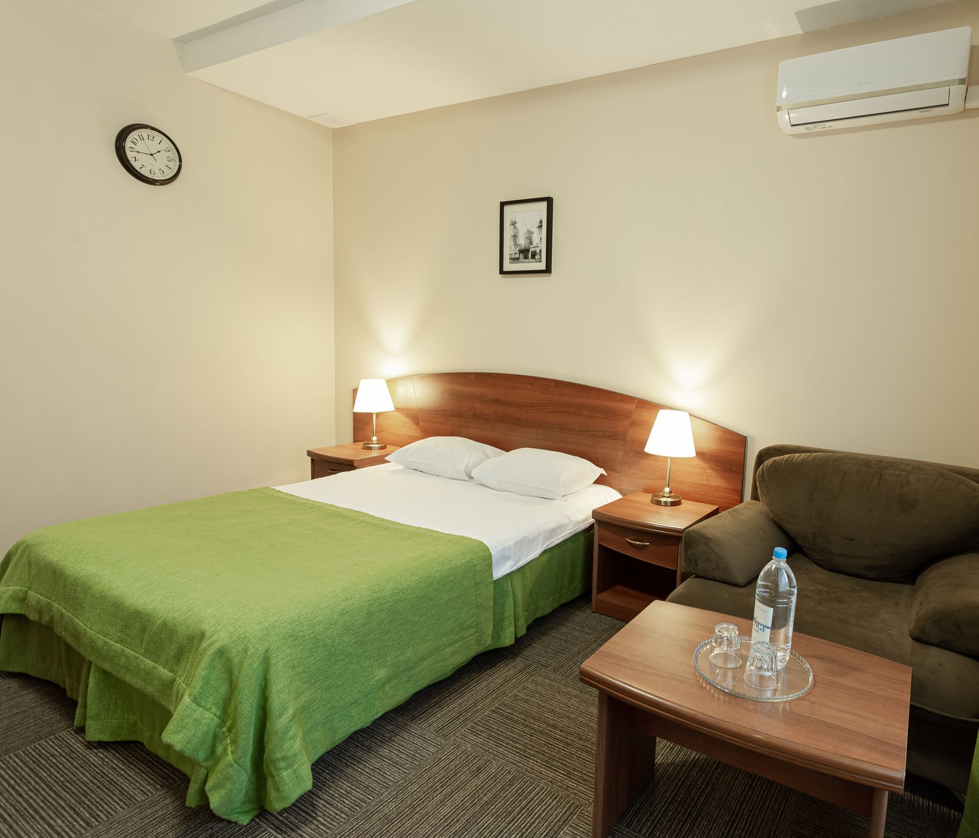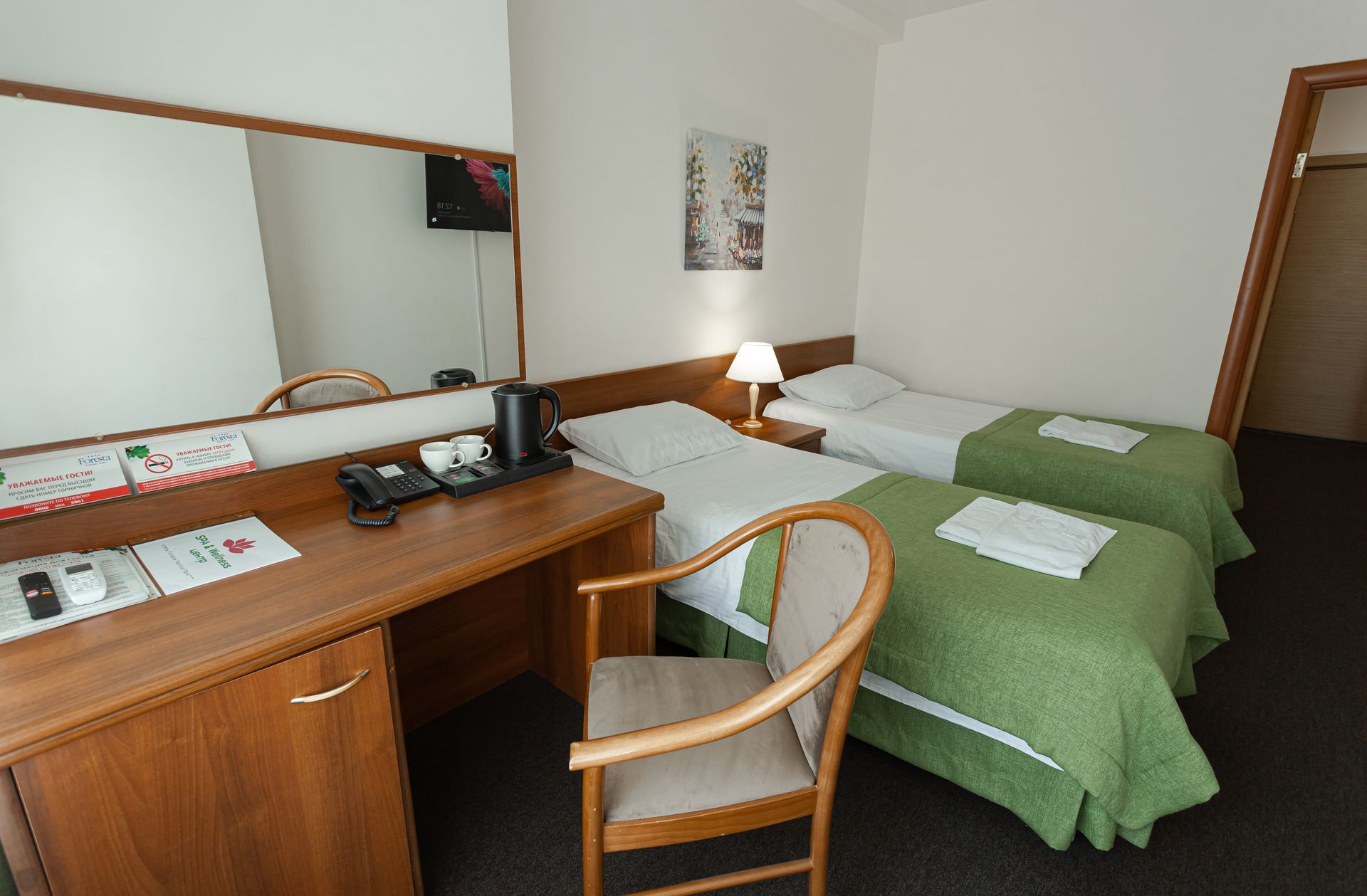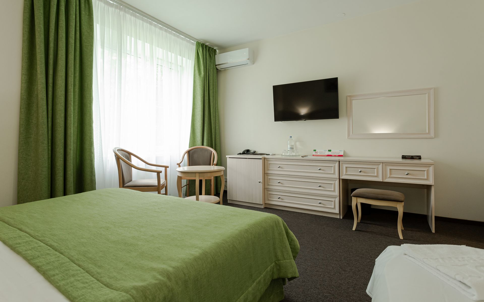 Стандартный номер — уютное однокомнатное размещение площадью от 18 до 31 квадратных метров, предназначенное для одного или двух гостей. В номере предусмотрена либо двуспальная кровать, либо две односпальные кровати, что позволяет выбрать наиболее удобный вариант в зависимости от предпочтений. Интерьер выполнен в современном стиле с акцентом на функциональность и комфорт, обеспечивая спокойную атмосферу для отдыха после насыщенного дня на территории отеля.