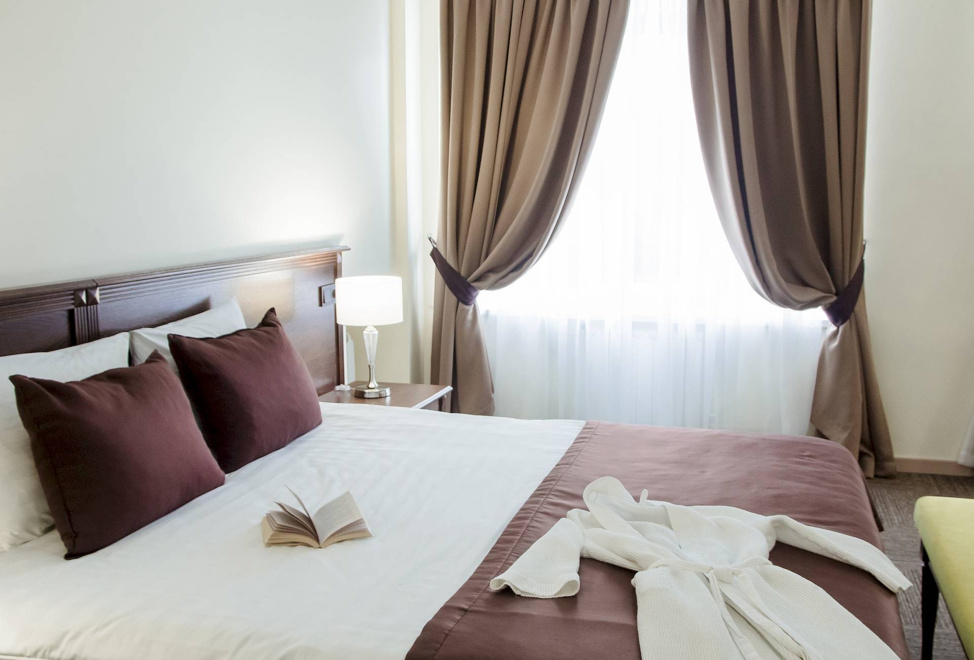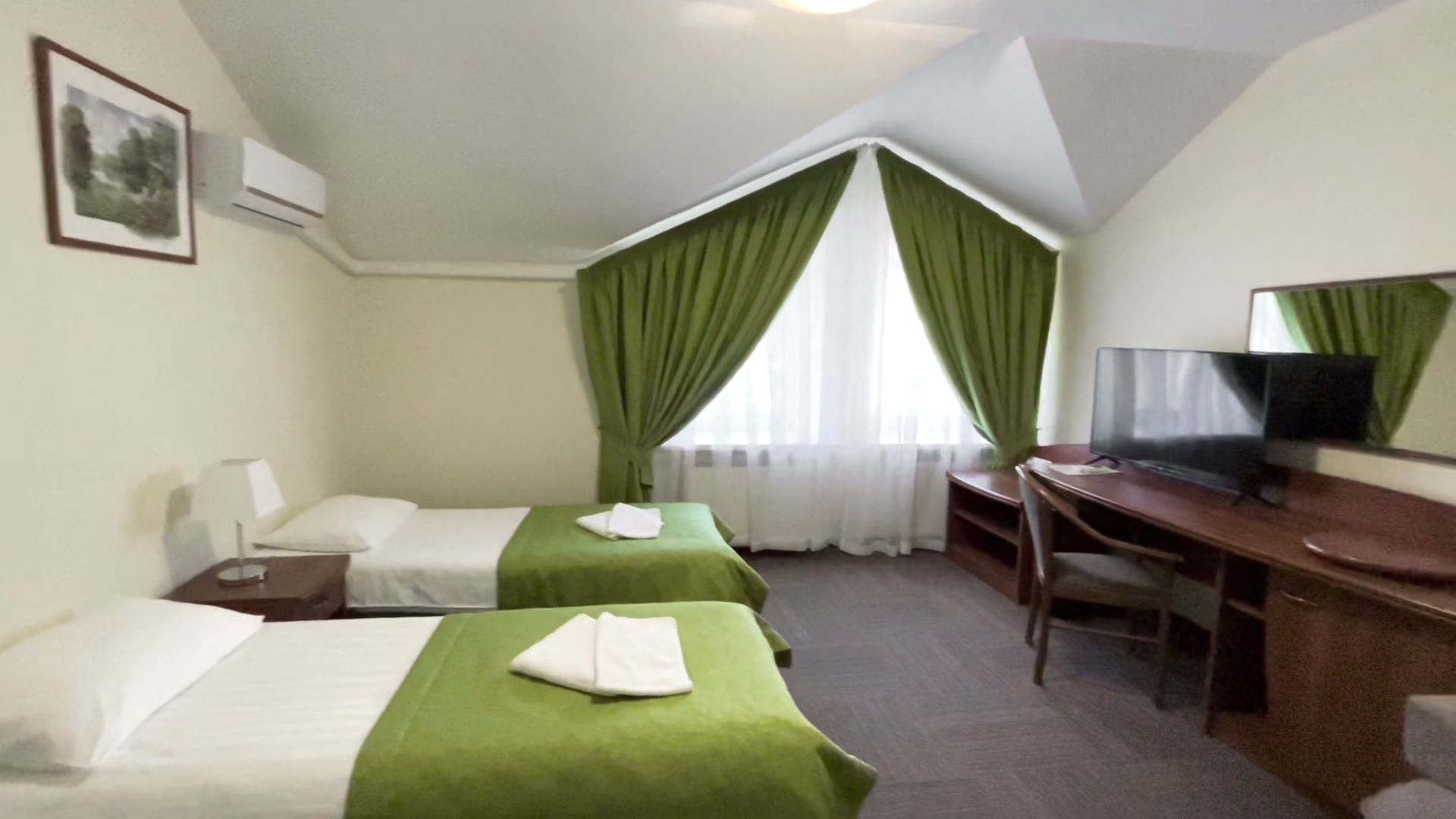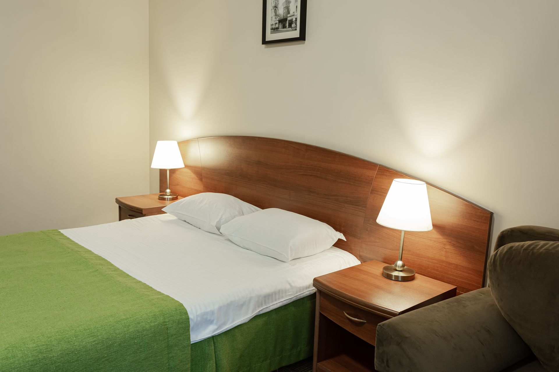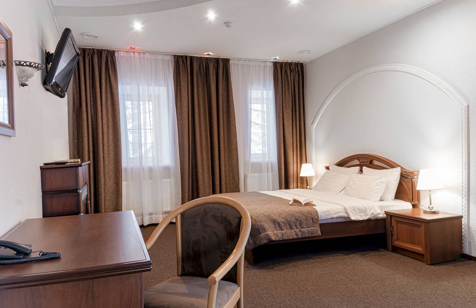 Стандартный номер — уютное однокомнатное размещение площадью от 18 до 31 квадратных метров, предназначенное для одного или двух гостей. В номере предусмотрена либо двуспальная кровать, либо две односпальные кровати, что позволяет выбрать наиболее удобный вариант в зависимости от предпочтений. Интерьер выполнен в современном стиле с акцентом на функциональность и комфорт, обеспечивая спокойную атмосферу для отдыха после насыщенного дня на территории отеля.