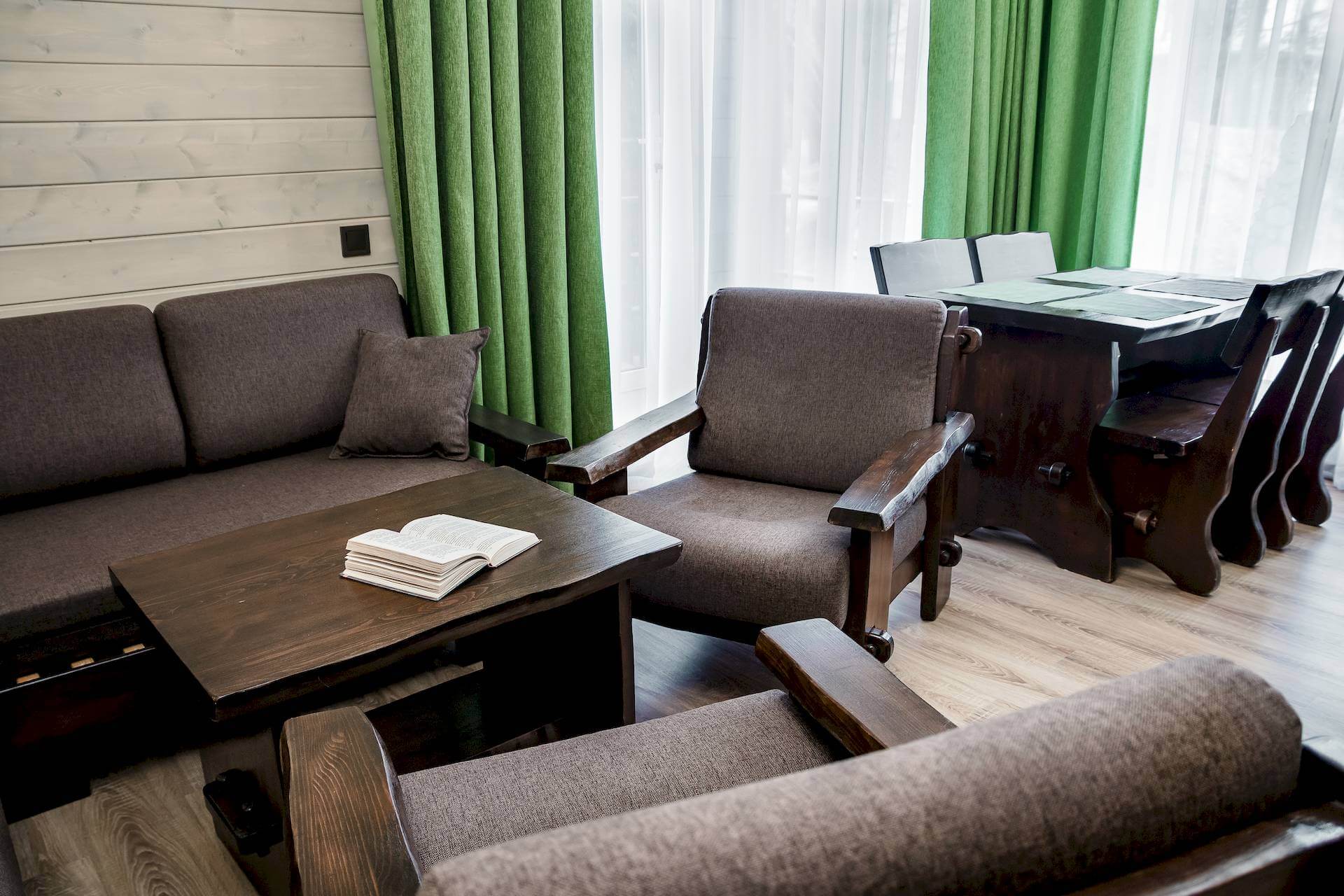 Гостевой дом «Фореста» — просторный двухэтажный трёхкомнатный коттедж общей площадью 140 квадратных метров, предназначенный для размещения от двух до восьми гостей. На первом этаже расположена светлая гостиная зона, а на обоих уровнях — три отдельные спальные комнаты, каждая из которых оснащена двуспальной кроватью. Такая планировка обеспечивает комфорт и уединение для нескольких семей или большой компании, позволяя одновременно сохранять личное пространство и пользоваться общими зонами для совместного досуга. Архитектура и интерьер выдержаны в современном загородном стиле, с акцентом на функциональность, эстетику и высокий уровень комфорта, что делает проживание в гостевом доме особенно привлекательным для длительного семейного или группового отдыха.
